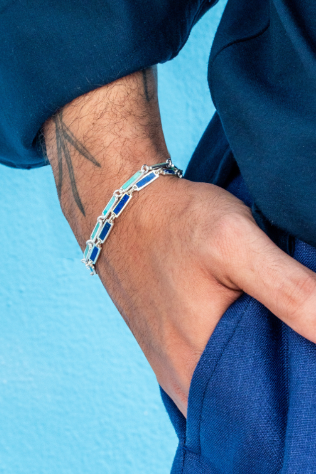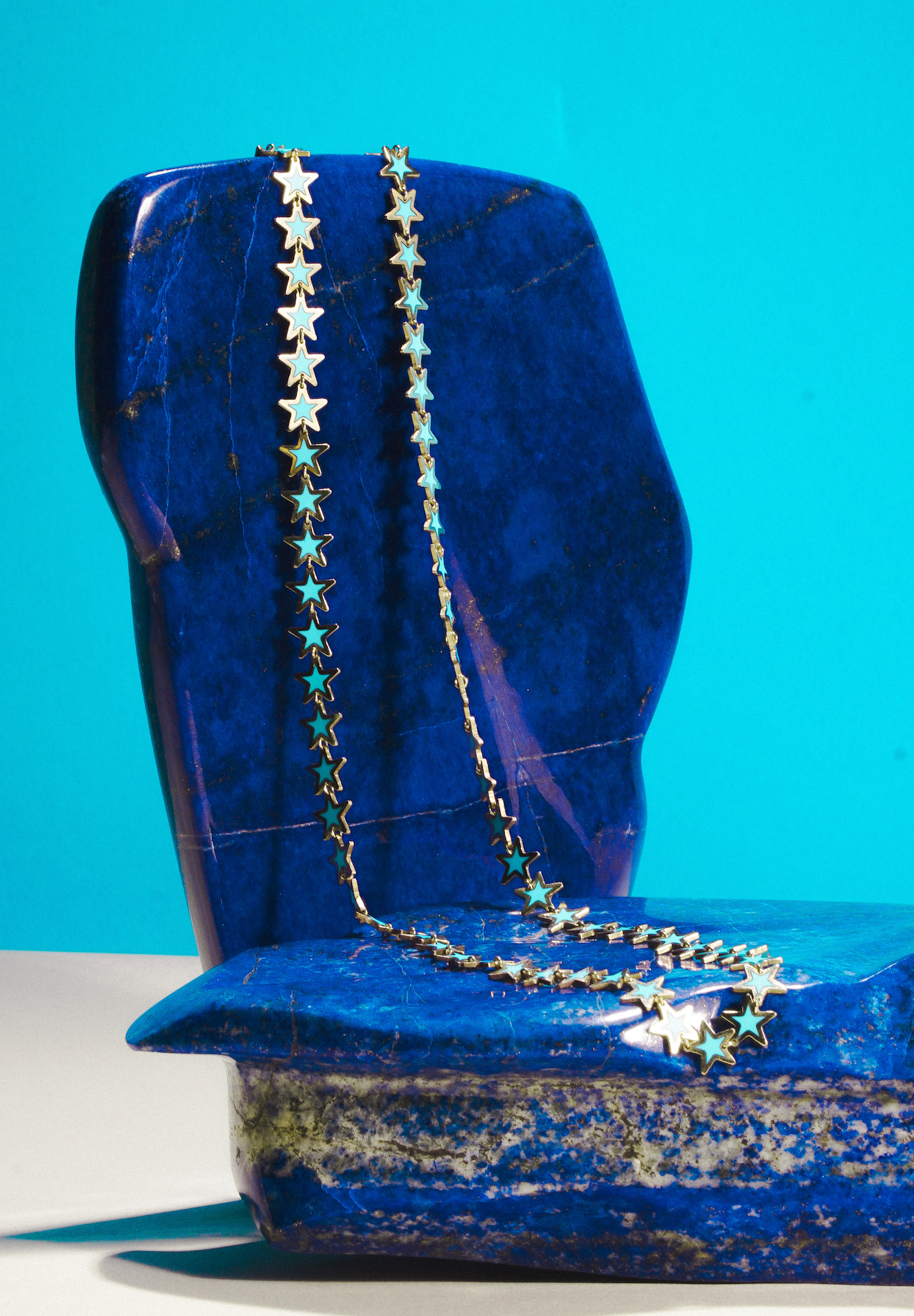 Inspired by Italian elegance, our handcrafted fine jewelry collection seamlessly blends 14k yellow gold to link two exquisite stone materials, turquoise and blue lapis, cherished by our brand. Throughout the centuries, these stones have been revered in ancient talismans for their associations with good fortune, clear understanding, health, and happiness.